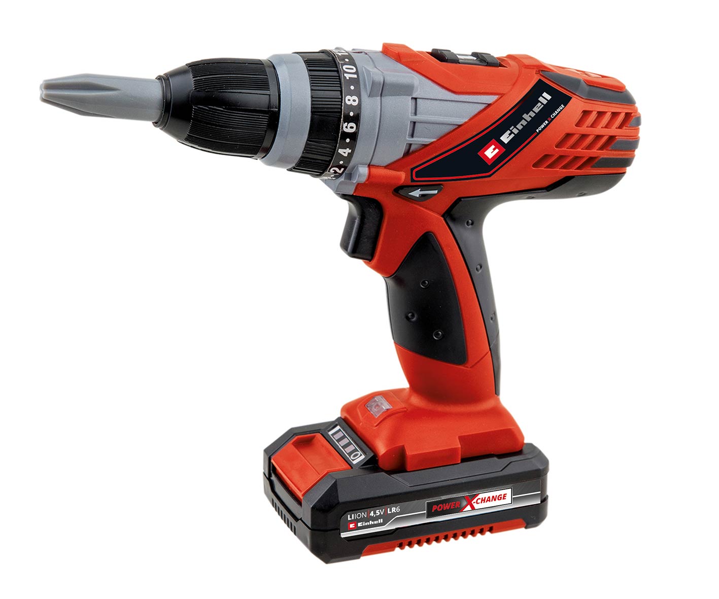 - Besonderheit: Das Besondere ist ist der einheitliche X-Charge Akku. Genau wie bei den Original-EINHELL-Werkzeugen kann jedes EINHELL- Kinderwerkzeug damit verwendet werden