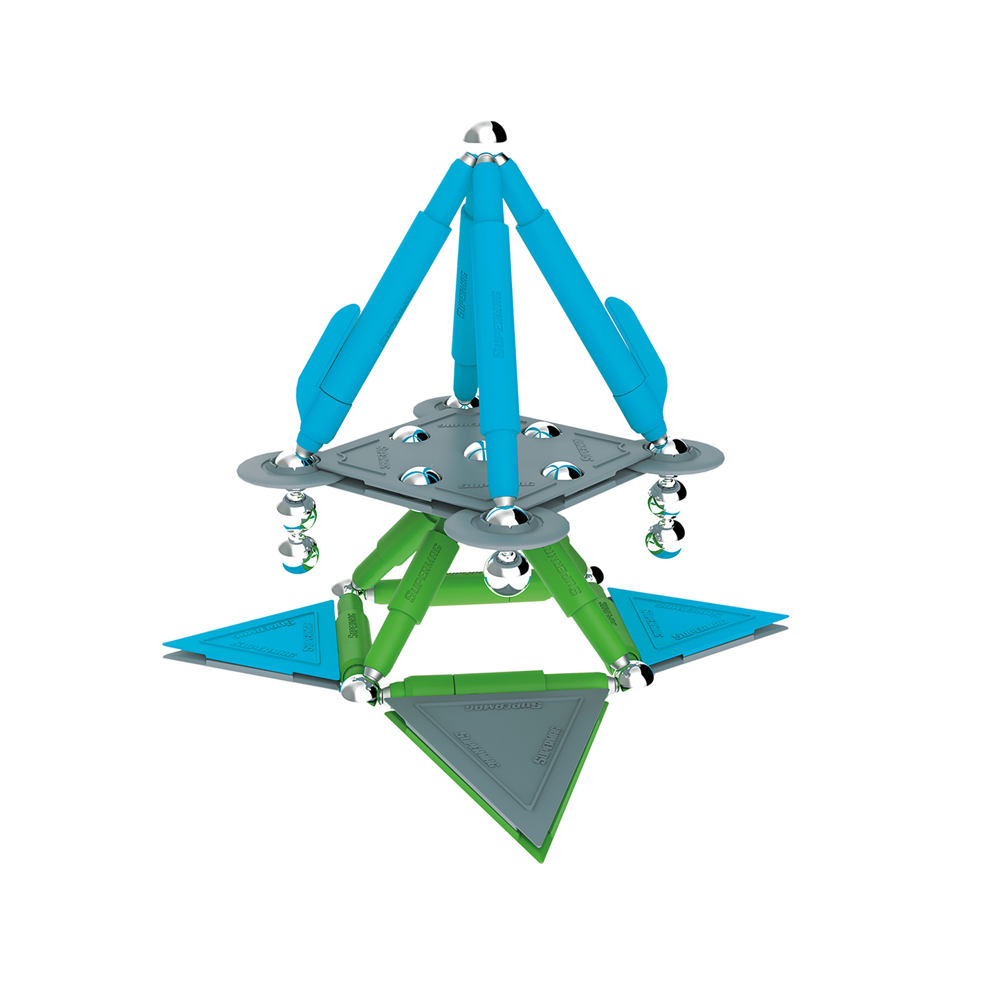 Stäbe in 2 verschieden Längen ermöglichen kreatives Bauen. Dünnere Spitzen der Stäbe ermöglichen komlexe und stabile Bauwerke. Bewegliche Dreiecke bieten erweiterten Spielspass, da sie z.B. als Türen, Fenster oder Flugzeugflügel zu benutzen sind. Bodenplatten lassen sich miteinander verbinden und ermöglichen somit breitere Konstruktionen.